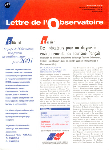 "Des indicateurs pour un diagnostic environnemental du tourisme français", La